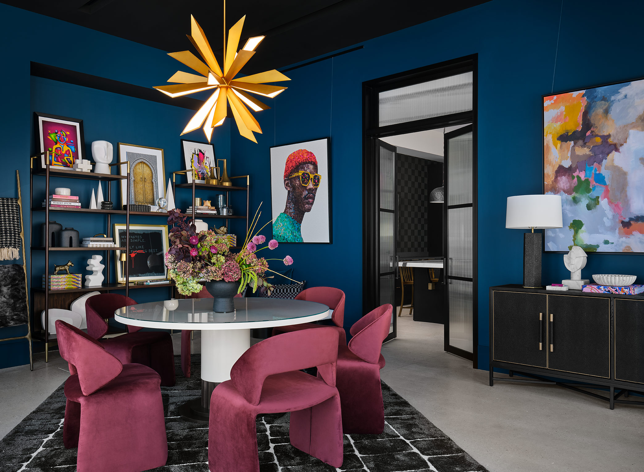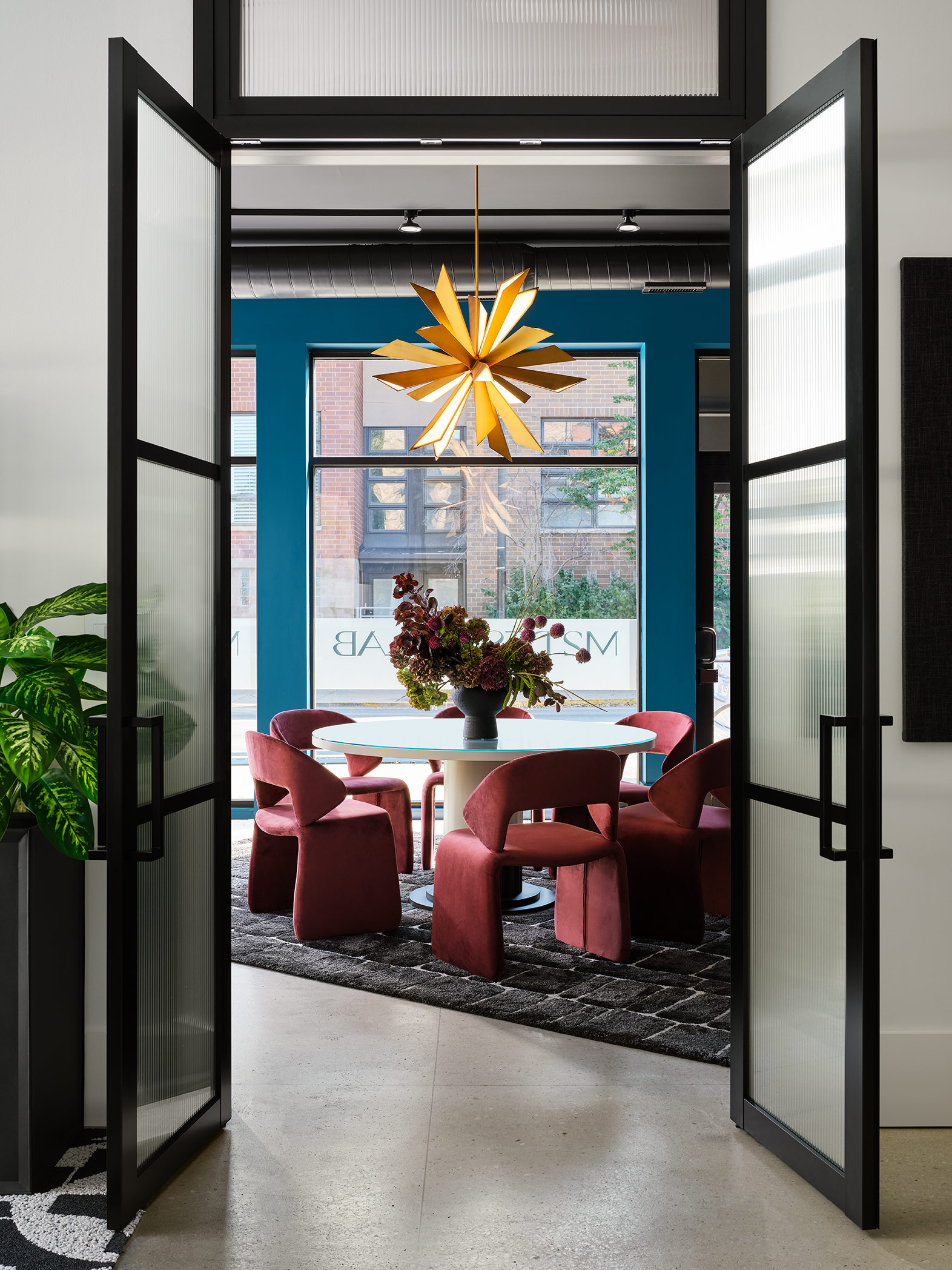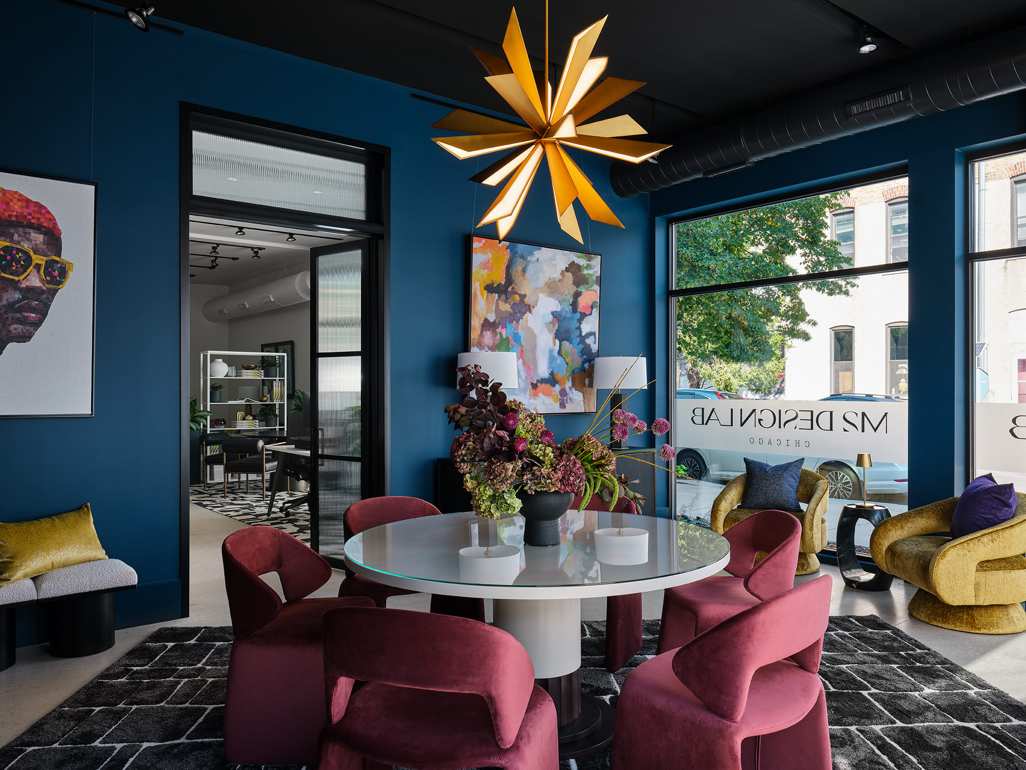 Tucked within Chicago’s creative Bucktown neighborhood, the M2 Design Lab studio embodies the firm’s bold, bespoke ethos — a working laboratory for color, texture, and form. Designed to inspire both collaboration and curiosity, the space blends architectural clarity with artful composition. Saturated hues, sculptural lighting, and tactile finishes form a narrative of modern sophistication rooted in urban energy.